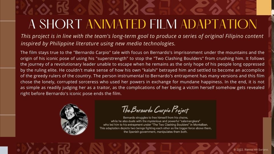 This paved the way for Tuldok's RISE Project, which opened the doors to the production of the Bernardo Carpio comics with augmented reality component and the short animated films Bernardo Carpio, Si Bulusan nan si Agingay, and Sulayman.