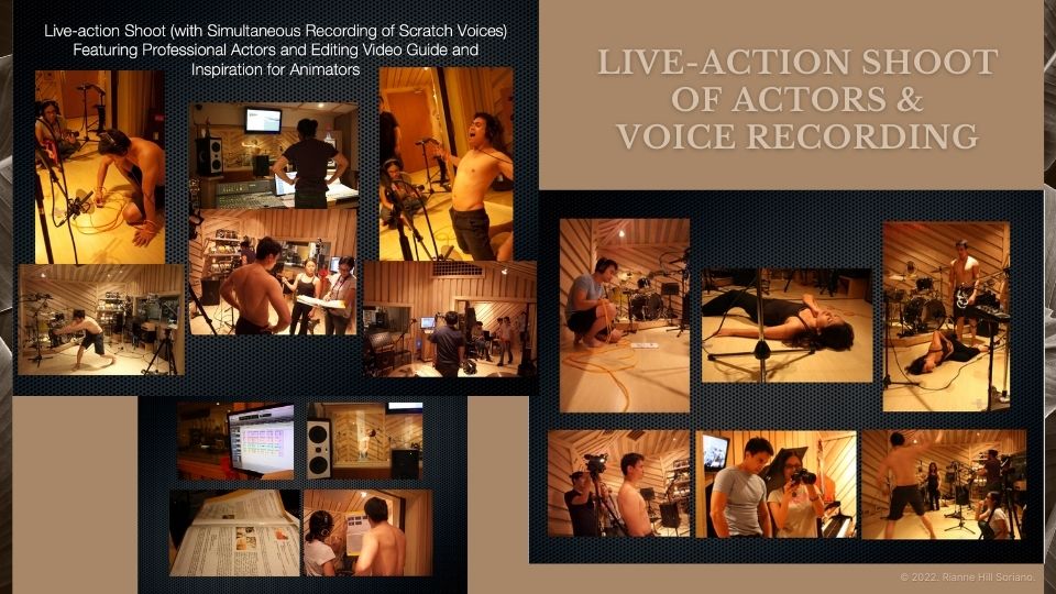 The duel between Bernardo and the sorceress works like a clash between two opposing elements. The production shot and recorded professional actors with the edited live-action footage serving as guide and inspiration for the
