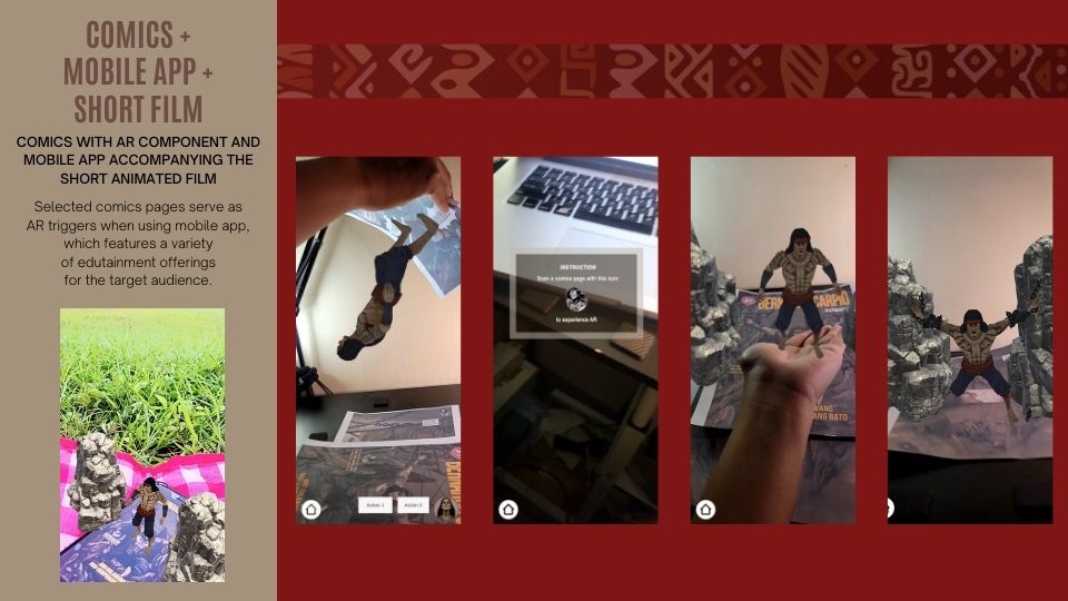 The motion-comics animation treatment utilized for the film expanded to a full-blown comics project with augmented reality (AR) component through the Innovation Grant from the Cultural Center of the Philippines (CCP). This was in line with the team’s long-term goal to produce a series of original Filipino content inspired by Philippine literature using new media technologies.