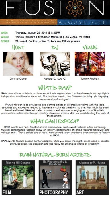 You can also check out the video of last month's "RAW: Las Vegas Presents Illuminare" for an idea of what's to come for the next showcase. You can also view videos of other RAW Artists events: "RAW: Los Angeles Presents Incite" and "RAW: New York Presents Artcade."